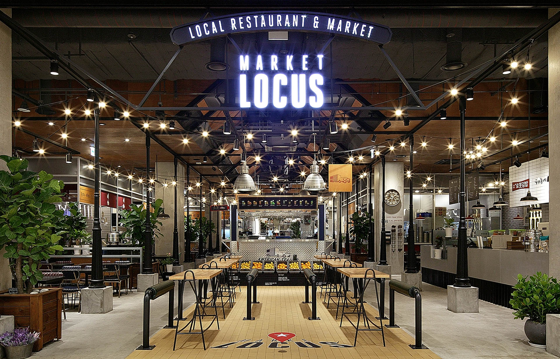'LOCUS'는 라틴어에서 유래하여 어떤 것의 존재, 발생지를 의미하는 단어로, 신선한 지역 농산물과 다양한 먹거리를 판매하는 시장을 뜻하는 단어 'MARKET'을 조합하여 새로운 장소를 만들어 냈습니다.